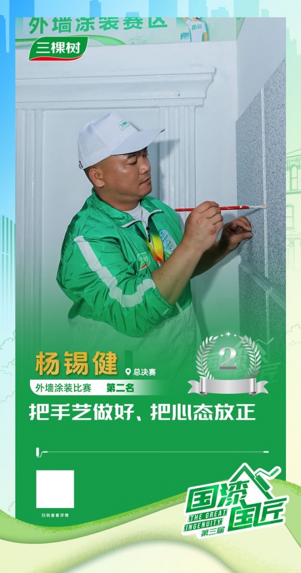 2025三棵树“国漆国匠”大赛总决赛外墙涂装亚军杨锡健:把手艺做好、把心态放正