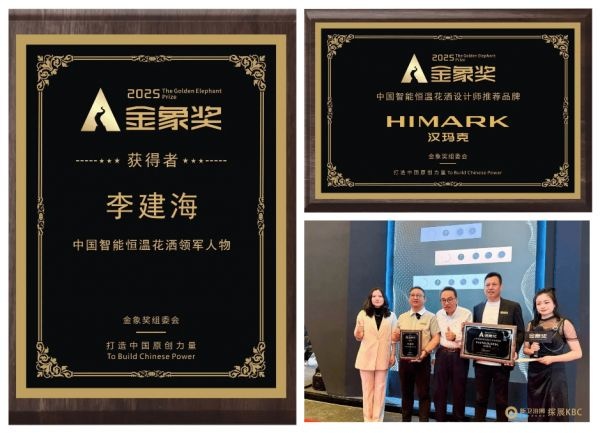 在中国泛家居行业高端标杆设计奖项——金象奖的评选中,汉玛克凭借卓越的创新设计与市场影响力,荣膺“2025中国智能恒温花洒设计师推荐品牌”。与此同时,汉玛克董事长李建海先生以其对行业的深远洞察与卓越领导力,获评“2025中国智能恒温花洒领军人物”。