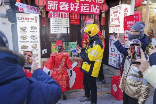值得关注的是,全行业外卖小哥在“京东家电家居新春好运站”不仅能领免费的腊八粥、汤圆和水饺,还能领取和京东外卖合作的、含有春联、玩偶等好礼的专属好运福袋。