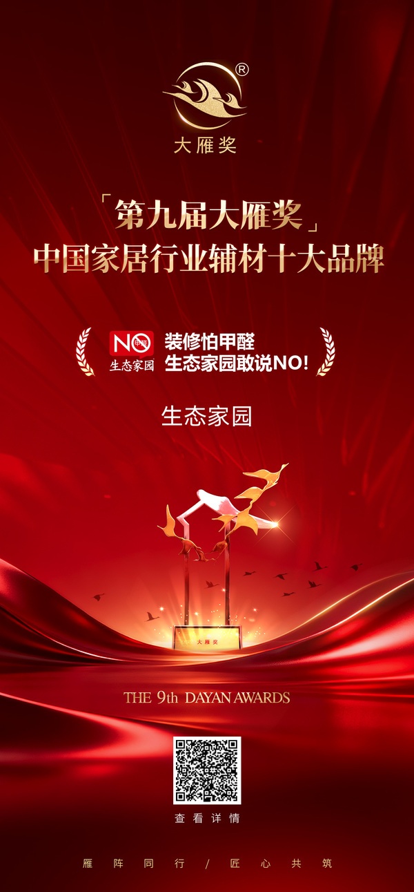 此次荣膺大雁奖,是生态家园发展历程中的又一重要里程碑,更是全新的起点。站在新的发展节点,生态家园将以这份荣誉为激励,继续坚守“零甲醛”的初心,秉持“保护环境、关注用户、呵护工长”的价值观,在“雁阵精神”的引领下持续深耕辅材专业领域,不断强化核心竞争力,以更优质的产品、更完善的服务、更前沿的技术,为构筑更加完善、高品质的家居产业生态贡献专业力量。在绿色环保的道路上不断探索,向更深处扎根,向更远处生长,与家居行业同仁携手共赴高质量发展的征途。