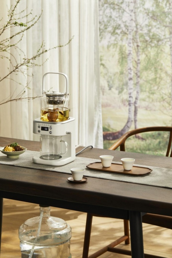 更值得一提的是,可蒸茶可煮茶,内置六种模式(含洗茶模式),实现一茶一温,不同茶种对应专属喷淋时间,花茶、原叶茶均可一壶满足。蒸茶模式专攻老茶、黑茶、乌龙茶,避开直接水煮的苦涩,充分激发茶叶香醇滋味;熬煮模式取下茶漏即可一键切换,一秒变身养生壶,适宜四季熬煮养生食材,默认慢火熬煮半小时,还可根据食材和口味调整时间,随按随停。全功率加热煮沸后,自动切换变频慢煮,既能有效防止沸腾溢出,又能以温和火力守住食材本味,避免久煮失香,不用守在旁边看管,办公间隙、居家休息,按下按键就能忙自己的事,到点就能喝到温厚好茶。