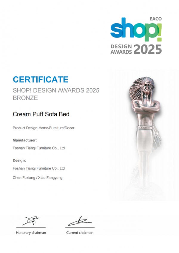 2026年3月26日,深圳国际会展中心皇冠假日酒店内,被誉为“零售界奥斯卡”的SHOP设计奖颁奖典礼隆重举行。在汇聚全球30余国获奖精英的现场,中国创新家居品牌木宫匠旗下作品“奶油泡芙沙发床”凭借其创新的空间整合设计与出色的用户体验脱颖而出,成功摘得2025年度SHOP设计奖铜奖。