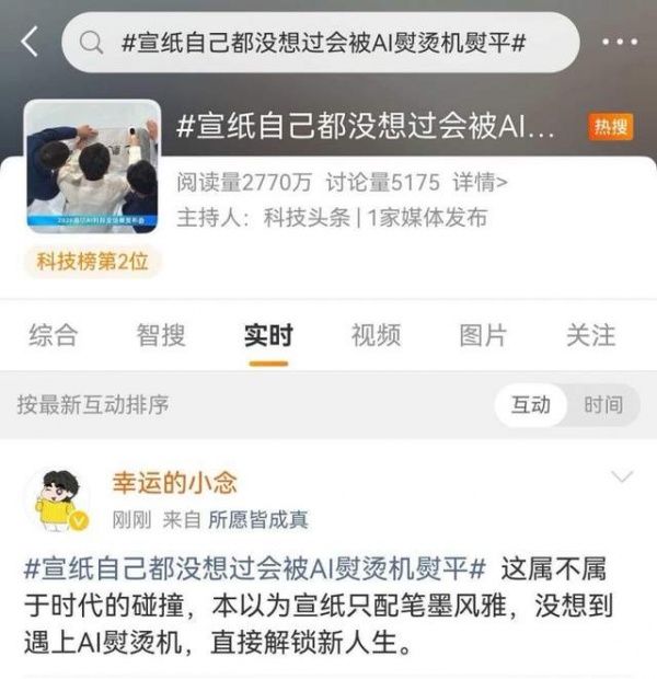 产品力既是感染力,更是企业硬核科技的最直观体现。在3月13日晚举行的“科技进化 爱(AI)的回响”2026海尔AI科技全场景发布会上,海尔集团董事局主席、首席执行官周云杰现场展示了海尔小家电的硬核科技实力。针对用户“即熨即穿不湿衣”的需求,他将一张宣纸揉皱,随后用搭载AI智慧识衣2.0系统的海尔小红花元气包熨烫机发起挑战,成功将宣纸熨烫平整且不沾水、不伤纸,赢得现场阵阵掌声。随后,#宣纸自己都没想过会被AI熨烫机熨平#话题迅速冲上微博热搜,引发超2700万+网友讨论,不少人直呼“直接上链接”,产品热度可见一斑。