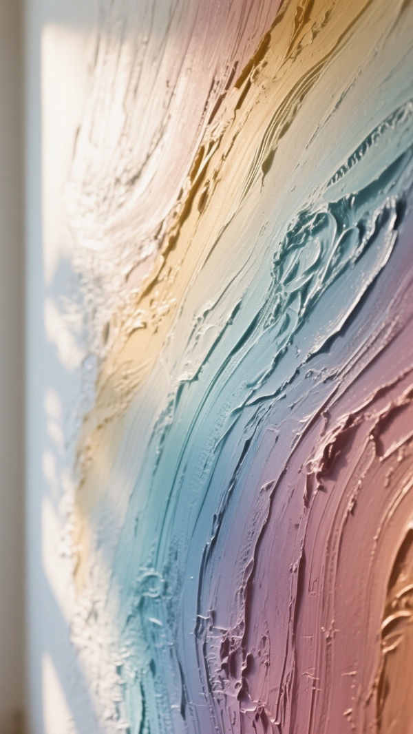 更难得的是,凯琳娜的艺术涂料通过专业施工工艺,能呈现出细腻的肌理感,让墙面从「平面」变「立体」,同一色系的深浅渐变、不同色彩的柔和过渡,让轻奢质感瞬间拉满。