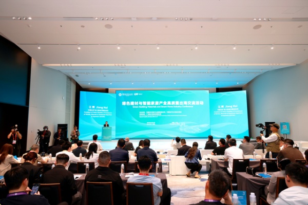 中国五矿化工进出口商会会长江辉在致辞中指出,全球绿色低碳转型与智能技术正深刻重塑行业格局。我国绿色建材与智能家居已形成完整高效的供应链,产品成为高品质、绿色智能的代名词。活动以务实对接为特色,旨在为好产品找到好伙伴,助力企业从“走出去”迈向“走得更稳、走得更远”。