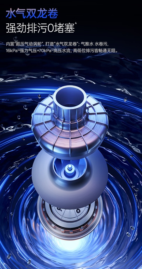 其次,独创“水气双龙卷”脉冲强排污,彻底终结堵塞焦虑。基站管道的堵塞与维护,是困扰无数用户的核心难题。芙万Station View内置的“超压气动涡轮”能产生高达16kPa的强力气压,并利用“脉冲排污”技术化强劲气压为“脉冲冲击”,与70kPa的高压水流共同形成“水气双龙卷”,实现气推水、水卷污的强劲排污效果。历经500次严苛测试,芙万Station View展现了100%畅排0堵塞的可靠品质,无论是高位还是低位排污,都能畅通无阻,让用户彻底告别手动清理的烦恼。同时,其AI管家级自清洁系统,能够主动监控管道健康,保持排污管道洁净清新,并根据洗地脏污情况精准匹配自清洁冲洗水量,省水更“省薪”。