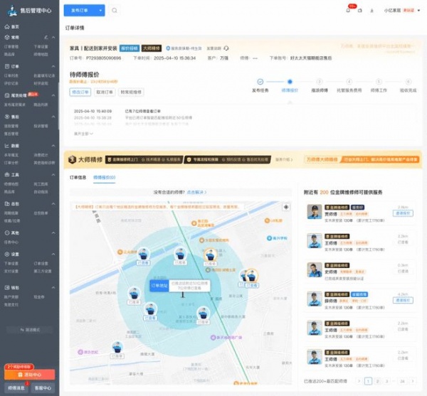 相较于线下游击队的“一锤子买卖”,互联网平台严格制定标准服务流程,从预约到上门再到诊断、出方案、定价、维修,后台直观显示服务前、服务中、服务后全流程节点,无形服务有形化,服务流程可视化,服务动向可追溯,服务时效可量化。
