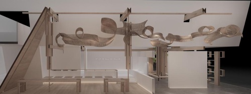展馆结构 以“编织”、“联结”为灵感语言,展馆的整体结构采用四组立体结构架连贯而成,如一道流动的脉络连接四个空间,其通透的编织形态,既分隔又连接空间,形成移步异景的视觉享受。同时,通过榫卯的搭接,在装置各面陈列出天格多款2026潮流新品,既时尚新颖,又通透大气。