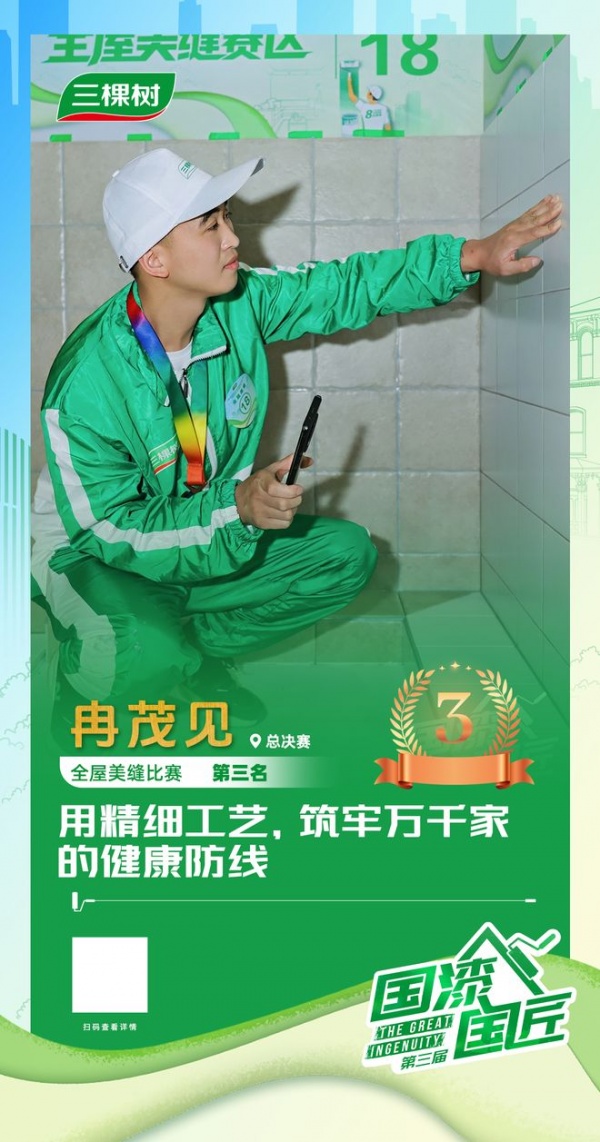 2025三棵树“国漆国匠”大赛总决赛全屋美缝季军冉茂见:用精细工艺,筑牢万千家的健康防线