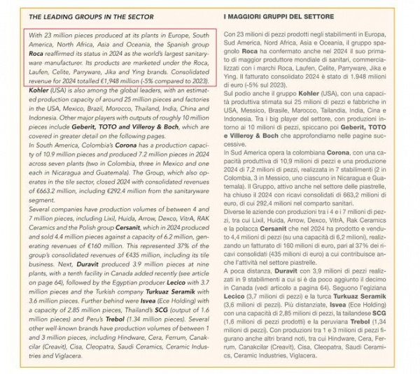 近日,国际权威行业杂志《Ceramic World Review》(陶瓷世界评论)正式了2024年“全球卫生陶瓷领导制造商(The world's leading sanitaryware manufacturers)名单”。榜单显示,西班牙百年企业乐家集团凭借稳健的全球布局与强劲的产能优势,连续7年登顶全球第一,再次彰显了其在全球卫浴市场的领导地位。