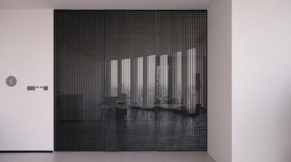 门上的玻璃更是别具匠心,ZMKM称之为“魔方”玻璃。横格条被巧妙印刷在玻璃表面,再结合贴在玻璃上的竖格条,形成富有韵律的几何图案。这种设计不仅保证了适度的隐私性,更让光线在格条间自由穿梭,创造出随时间变化的光影效果。当有人轻轻推动门扇,它便开始360度优雅旋转,无论从哪个方向推动,都能流畅响应。