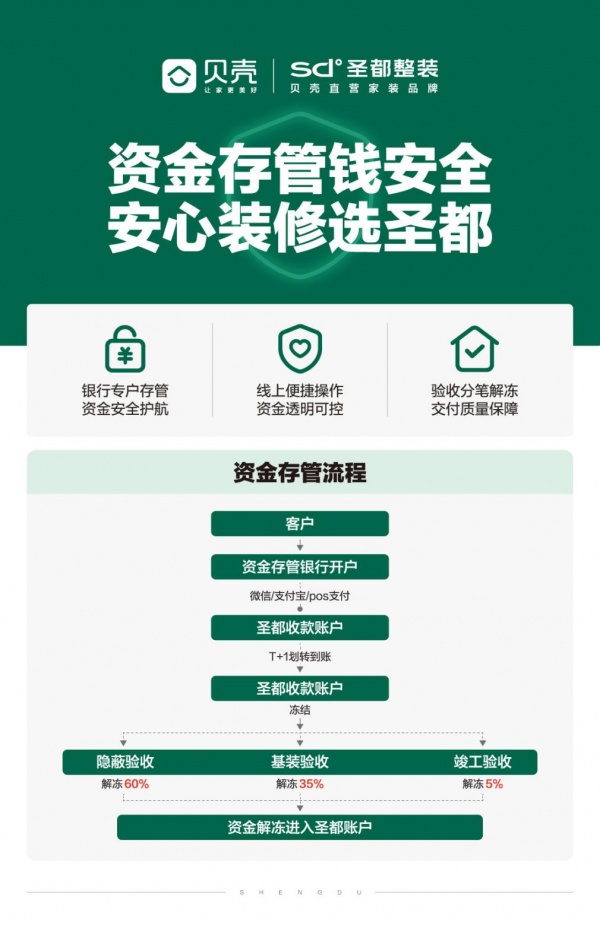 自2025年8月8日试运行、8月15日正式发布以来,圣都整装联合中信银行率先落地的资金存管模式,这场以“制度创新”为核心的“半年实践”,正成为撬动行业变革的支点。数据显示,在广州区域,超过92%的新客户主动选择这一服务,所有验收节点的资金解冻成功率达到100%。在数据的背后透露出一个核心命题:资金存管,如何从一项金融工具,演进为重塑行业信任、兜底“好房子”品质的关键机制?
