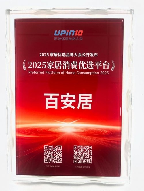 在2025家居优选品牌大会上,百安居成功入选“2025家居消费优选平台”,成为线上线下家居消费的平台型优秀品牌代表。此次大会由家居优品智库主办,中国建筑材料流通协会、全联家具装饰业商会等五大行业权威协会指导,以六大严谨标准与六大专业流程,围绕家居品牌年度表现进行多维评估。此次获奖,是行业对百安居服务与口碑的高度肯定。