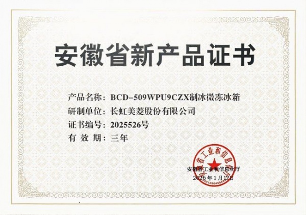 此次斩获安徽省新产品证书,既是对美菱创新成果的肯定,也是美菱持续践行“以用户为中心”理念的生动体现。未来,美菱将继续聚焦用户需求持续研发新产品,推动家电产业技术升级,为万千家庭带来更美好的品质生活体验,为安徽制造业高质量发展注入强劲动力。