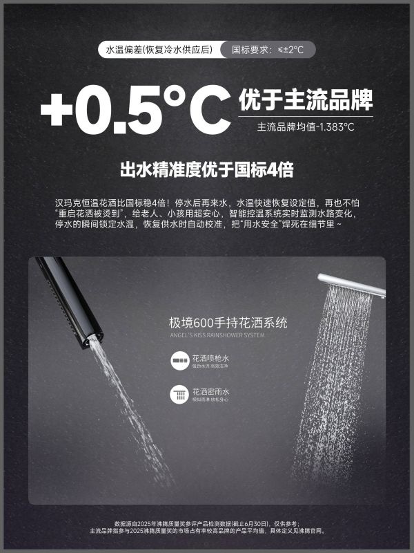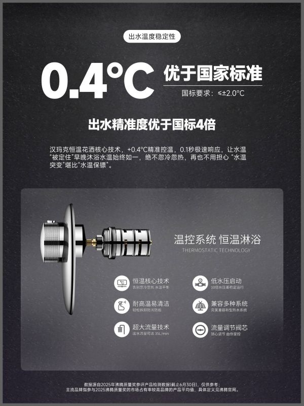 它不追逐昙花一现的市场热度,只专注于打磨经得起时间考验的产品;不沉迷于概念化的自我标榜,只用心用实力兑现对用户的承诺。从±0.4℃的极致控温,到50年的质保承诺;从高端酒店的专属配置,到全球用户的口碑赞誉,汉玛克的每一步,都在为“恒温花洒第一品牌”写下最坚实的注脚。