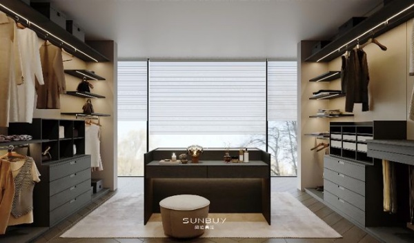 - 黄金比例,自带韵律(立面秩序):以建筑模数为基础设计衣柜立面,按模数倍数递增规划分区,拒绝杂乱分割,让柜体立面呈现出自然的黄金比例,自带视觉韵律感。