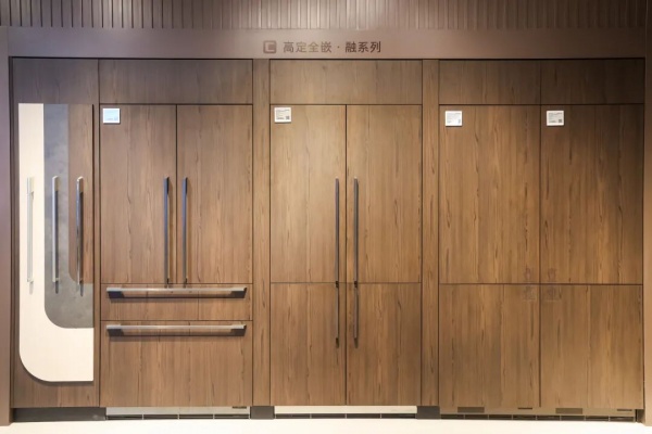 而全嵌冰箱区域则成为海尔全屋家居构建差异化竞争的核心展示区,金丝沉香、石纹灰等多元花色将东方美学与现代设计融合,橱柜与冰箱的有机一体化集成,搭配模块化设计工具与一键适配的生产体系,实现了设计零翻车、落地零误差。依托同等尺寸更大容积的空间优势,该系列将颜值与实用完美结合,成为门店在当地市场的核心竞争力,让柜电深度融合不再是概念,而是触手可及的生活体验。
