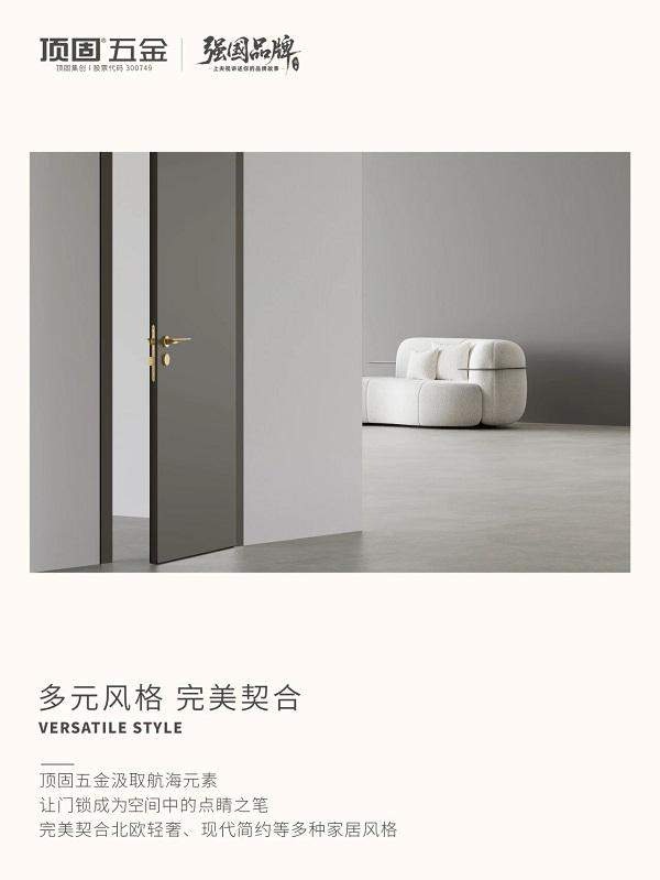 顶固航海系列,将帆船这一古老而浪漫的交通工具,凝练为家门上的一道弧线。它让我们在每日的启闭之间,得以短暂地抽离于琐碎日常,想象那片无边无际的蔚蓝海洋,想象帆借风势的自由,也想象归航靠岸的安宁。它告诉我们,航海梦不必远行,它就在家门口,在那道扬帆的弧线里。