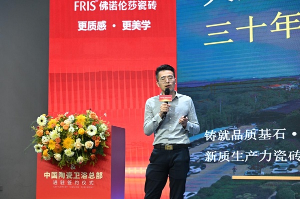 在嘉宾演讲分享环节,天欣科技副总经理曹诗经以“新质生产力典范,引领价值回归”为主题,系统阐述企业战略与品牌规划。他介绍,公司年产能达5000万平方米,4条智能双层窑和全数字化管理使能源节省率达30%以上,生产能耗与污染物排放均下降约15%,单线产能提升约18%。首创原料预处理系统可稳定生产30种白胚,并叠加高通釉、金属釉、糖果釉、超频釉等多种釉面体系,产品花色更准、透感更强、质感更优。在“价格内卷到价值回归”的背景下,公司提出“三高四新”战略:以智能制造与高品质交付为基座,推进模式创新与数字化精益管理,实行柔性定制与精准交付;在产品端加强区域化差异与矩阵打造,强化终端动销与区域保护;在品牌端,以佛诺伦莎为价值中心,围绕“更质感、更美学”的定位,建设高识别度展厅IP,打通线上线下一体化传播,与年轻消费者建立持续链接。