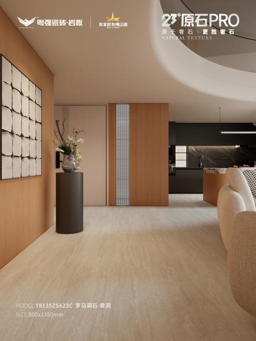 柔光质感温润不刺眼,素雅内敛,淡淡的米黄基底,暖而不艳,呈现石材天然层次,让空间在不同光影下皆呈现高级质感。