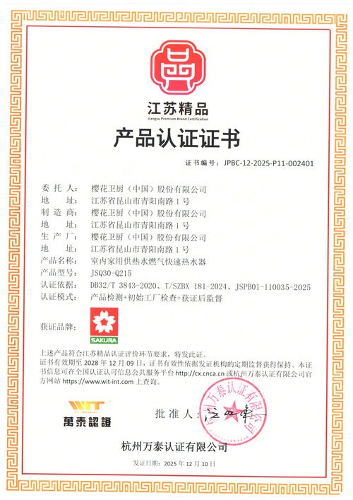 正是这种近乎苛刻的品质管控,让樱花燃气热水器JSQ30-Q215脱颖而出,荣获“江苏精品”认证。这款产品的CO排放仅为300 ppm,远优于国标600ppm的强制要求,属于低排放优秀水平,产品采用PID自动恒温算法,搭载无氧铜反绕水箱,精准水气配比。智能双阀四段燃烧技术,让夏天微火不烫身,冬天猛火热水足。上抽式直流变频电机实时感应风压变化,当环境温度低于5±3℃时,陶瓷加热器即时开启,避免水管水箱冻裂。启动水压低至0.01MPa,高楼老宅无惧用水高峰期;故障自检功能全时护航,洗浴倍安心。