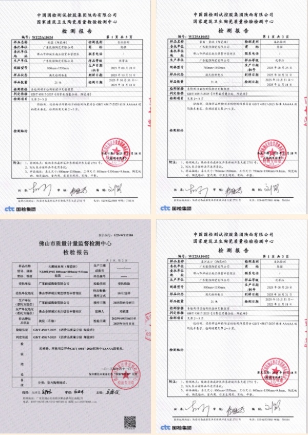 品牌实力的背后是领先产品力。2025 年新国标实施,能强瓷砖率先完成全项检测,通过新国标 5A 级认证。新国标中 5A 级为最高质量等级,对瓷砖核心指标要求严苛。能强依托佛山原产地工厂与国际顶 尖设备,以用户需求为核心,建立全流程品质管控体系,旗下产品兼顾美学设计与实用性能,守护每一个家庭的居住安全与健康,用产品力筑牢品牌护城河。