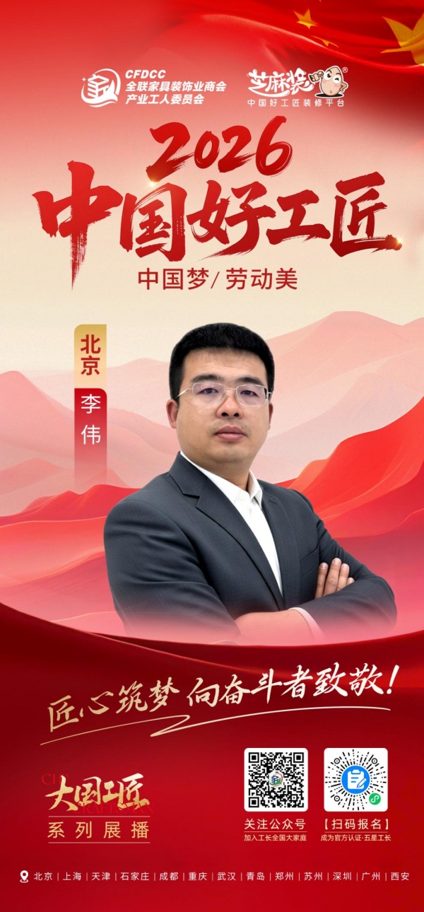 十七载风雨兼程,李伟从青涩学徒成长为青年匠者,用一砖一瓦的精工、一言一行的诚信,筑就万千家庭的安居空间。在他身上,大国工匠精神是少年砺技的执着、诚信服务的初心、标准施工的坚守、与时俱进的进取。作为新时代青年工匠,他以实干笃行诠释匠者担当,为家装行业高质量发展注入青春动能。