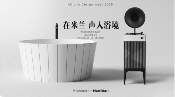 【2026年4月,米兰讯】作为全球设计界的风向标,2026米兰设计周(Milano Design Week)于 Fuorisalone 外围展盛大启幕。高端留声机品牌梵尼诗 Fennessy,与Monblari 琬宝丽共同携手登录米兰设计周,双方以 “声入浴境” 为核心主题,通过沉浸式黑胶音乐装置与卫浴美学场景的跨界融合,为全球观众打造了一场集听觉、视觉、触觉于一体的多感官盛宴,用设计与艺术诠释精致生活的全新内涵。