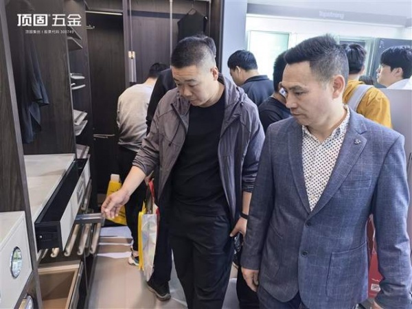展会现场,顶固五金以全新升级的六大系统构建了完整的产品生态——基础五金系统、门用五金系统、移门五金系统、橱柜收纳系统、衣柜收纳系统及灯光型材系统,展现出强大的系统化集成能力。展位内人头攒动,客商云集,专业观众围绕新品进行深入交流,充分印证了顶固五金在行业内的品牌号召力与市场认可度。